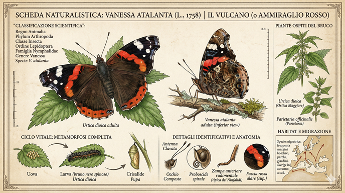 E’ una delle specie più comuni nel Parco della Dora e in tutto il Nordeuropa ed è facile avvistarla anche in periodi freddi, prima dell’arrivo dell’inverno o nei primissimi giorni della primavera. L’ Atalanta (Vanessa atalanta) è anche nota per essere capace di cadere in stato di ibernazione; la colorazione degli esemplari che riemergono da questo stato è notevolmente più scura rispetto a quella dei nati in primavera.