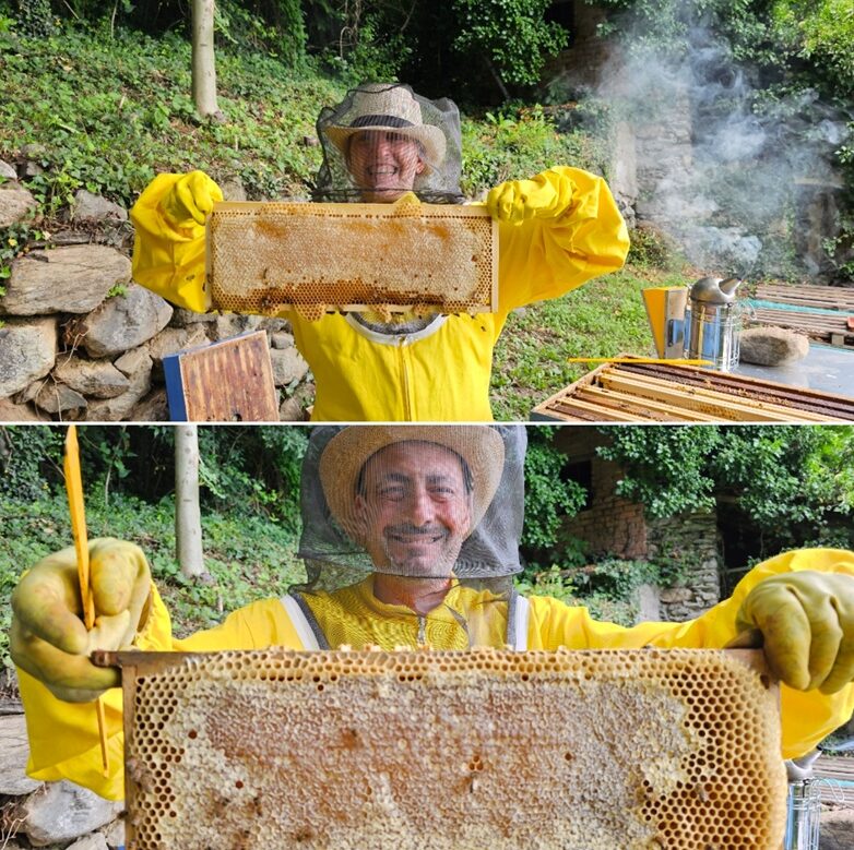 - Prima produzione della nostra vita di miele, propoli e cera d’api;