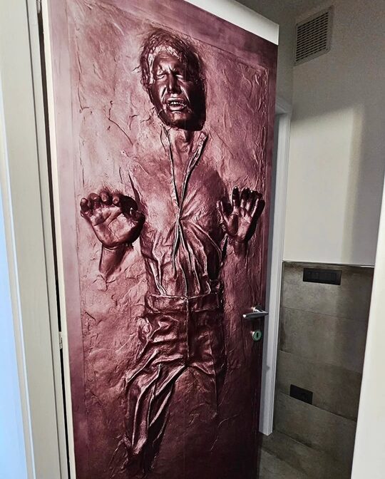 - Realizzato una porta con stampa di Han Solo nella carbonite per accedere alla doccia;