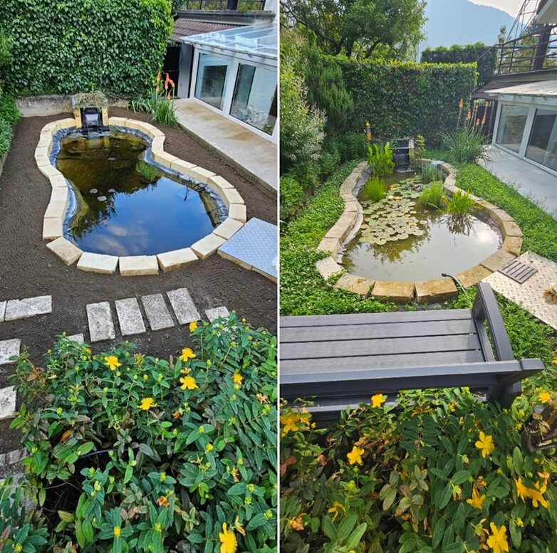 - Realizzato il battuto in cemento in giardino per ampliare la voliera;