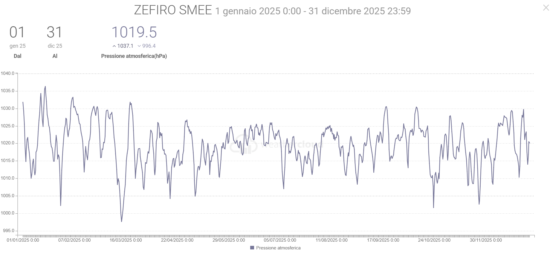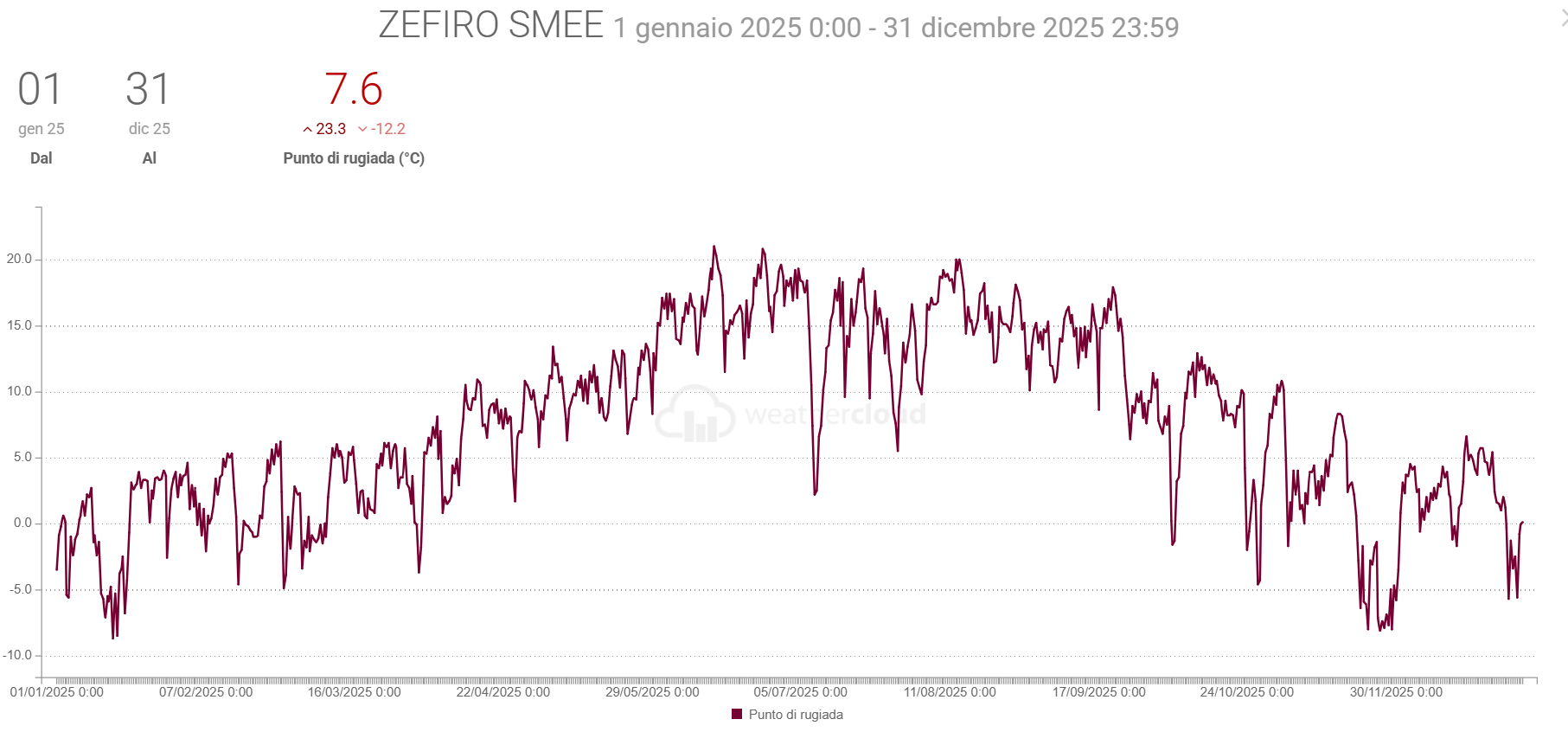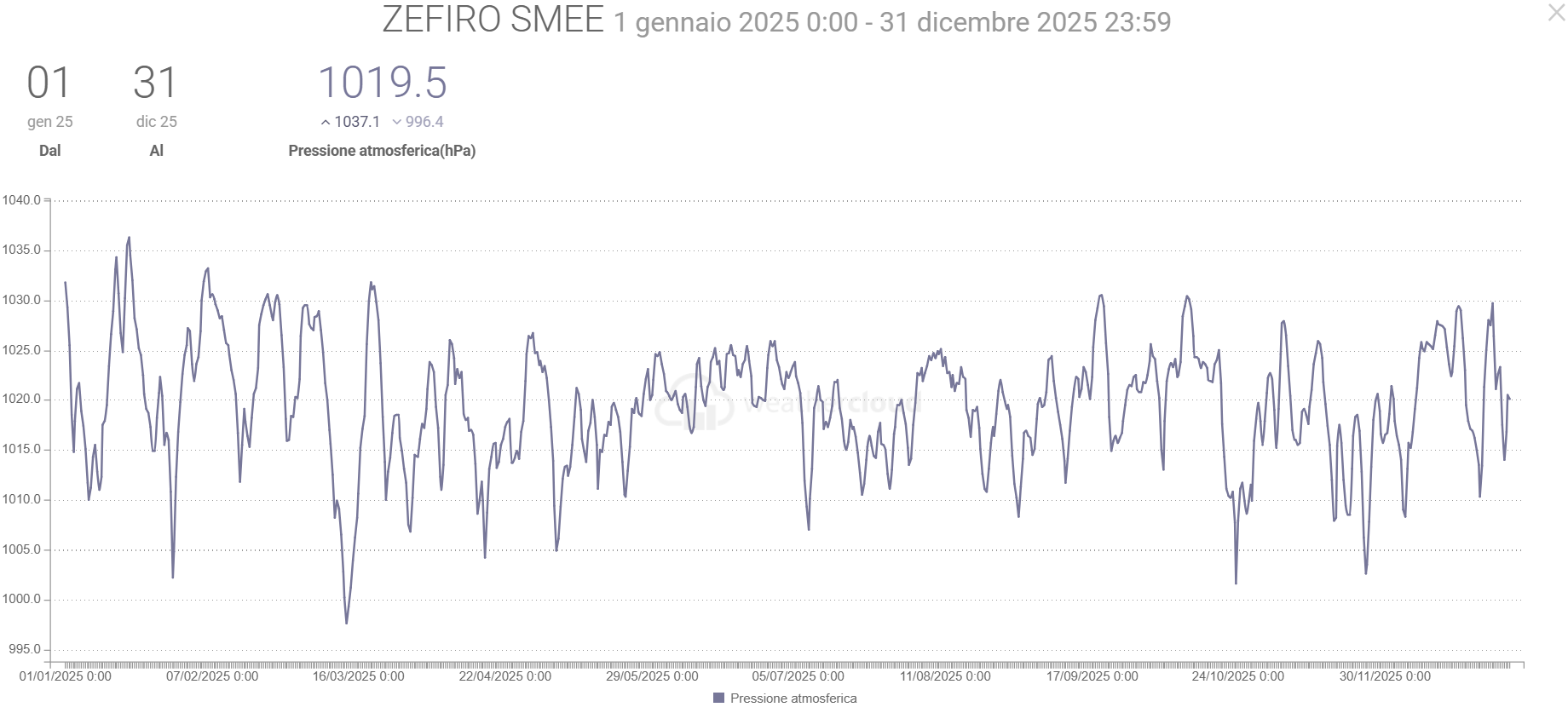 - La Radiazione solare media è stata di 1,4 W/m2 in più del 2024 con picco di 1430,0 (uguale al picco dell’anno prima)