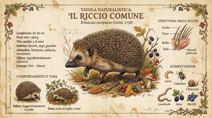 Il riccio comune, talvolta detto anche riccio europeo (Erinaceus europaeus), è un mammifero della famiglia Erinaceidae, spesso impropriamente chiamato porcospino (che invece fa riferimento all’istrice). Il riccio presenta caratteristiche morfologiche arcaiche (come la formula dentaria e la conformazione del cervello) che lo accomunano ai primi mammiferi comparsi sulla Terra al termine del Cretaceo, rispetto ai quali non si è differenziato di molto: nel corso di milioni di anni ha solamente evoluto il caratteristico rivestimento di aculei.