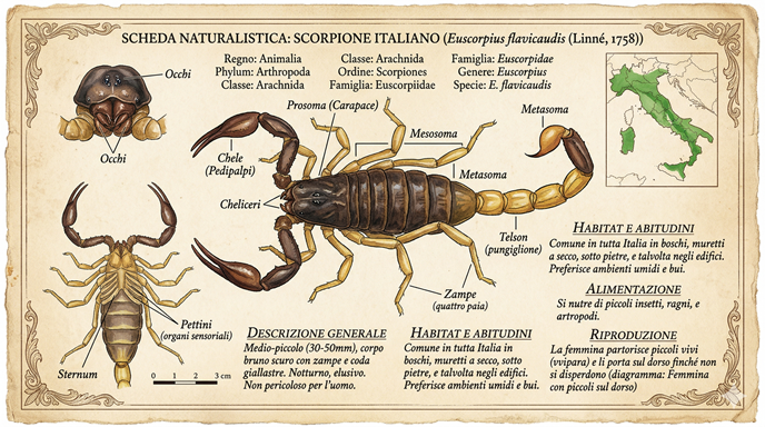Lo scorpione italiano, (Euscorpius italicus), è uno scorpione della famiglia Euscorpiidae distribuito in Europa (Italia, Svizzera, Francia, Balcani, Turchia, Grecia) e in Nord Africa. L’habitat è rappresentato soprattutto da vecchie mura, pietraie e legnaie, dove trova rifugio in buchi, anfratti e crepe. È tuttavia reperibile anche nei campi erbosi e sotto le pietre nelle zone montuose.