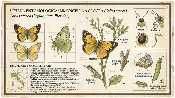 Questa farfalla è bellissima, trovo molto interessante questa sua duplice personalità: timida e dimessa quando si posa, quasi invisibile e sgargiante e luminosa quando svolazza! Limoncella o Crocea (Colias crocea) Una bella farfalla della famiglia dei Pieridae, con apertura alare di 4-5 cm. Quando è in volo, sono ben visibili il colore giallo aranciato delle ali e l’ampio margine bruno scuro. Quando si posa invece e chiude le ali, predominano i colori più tenui; giallo pallido, bianco e verde. Le piante che ospitano la larva sono il trifoglio, l’erba medica ed altre Leguminose. Comune nell’Europa centrale e meridionale. Frequenta molti ambienti erbosi e [...]