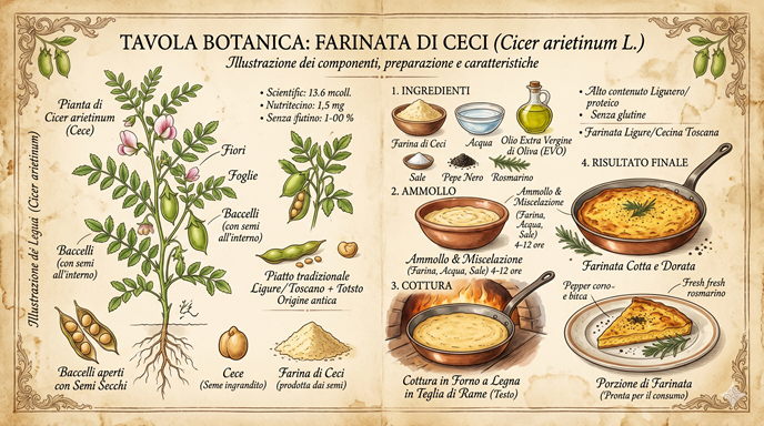 PRESENTAZIONE La farinata di ceci è una torta salata molto bassa a base di acqua e farina di ceci, cotta in forno a legna fino a formare una deliziosa crosticina dorata. Oggi però vi proponiamo la ricetta per realizzarla nel vostro forno di casa! La farinata di ceci è una specialità ligure, tipica in particolar modo della città di Genova, ma con origini molto antiche che risalgono con tutta probabilità all’antichità greca e latina. Tuttavia la leggenda che la riguarda risale al periodo delle Repubbliche Marinare, e narra che la farinata così come la conosciamo oggi sia nata nel 1284, [...]