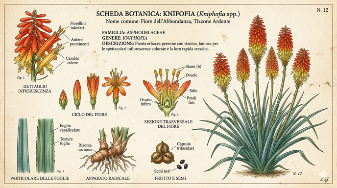 Knifofia o Kniphofia o Fiore dell’abbondanza (Knifofia uvaria)