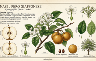 0030 (Nella grafica è il numero 6) Nel giardino nell'Eremo ElGram i precedenti proprietari avevano impiantato un piccolo frutteto composto da una dozzina di alberi da frutto molto particolari. Devo ancora inquadrare bene i quattro susini. Inizio pertanto a scrivere una sola scheda descrittiva riassuntiva, riservandomi in futuro di moltiplicarla in quattro dedicate, ve ne fosse la necessità. 👁🗨 CHECK 12-2023: 🟢 Visualizza questo post su Instagram Un post condiviso da Bron ElGram (@bron_elgram) Pyrus pyrifolia Il nashi (梨) o pero giapponese (nome scientifico Pyrus pyrifolia (Burm.f.) Nakai, 1926) è un albero da frutto appartenente alla famiglia delle Rosacee, il cui frutto è comunemente conosciuto anche come pera-mela o pera [...]