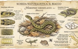 E' il primo animale che abbiamo incontrato visitando per la prima volta l'Eremo: Ary, camminando nel giardino, chiese al venditore "ci sono le vipere qui?" e mentre questi rispondeva "no, qui no, siamo a quota bassa", alla sue spalle, sul nespolo vicino al capanno degli attrezzi, scivolò una lunga "uslera" (in dialetto franco-provenzale) gialla e verde... 😁😁😁 Biacco (Hierophis viridiflavus) È uno dei serpenti più comuni in Italia, spesso osservabile mentre si riscalda al sole. Può raggiungere dimensioni anche oltre il metro e mezzo di lunghezza. Ha sottili strisce gialle e verdi sul dorso, che le conferiscono un aspetto reticolato ma [...]
