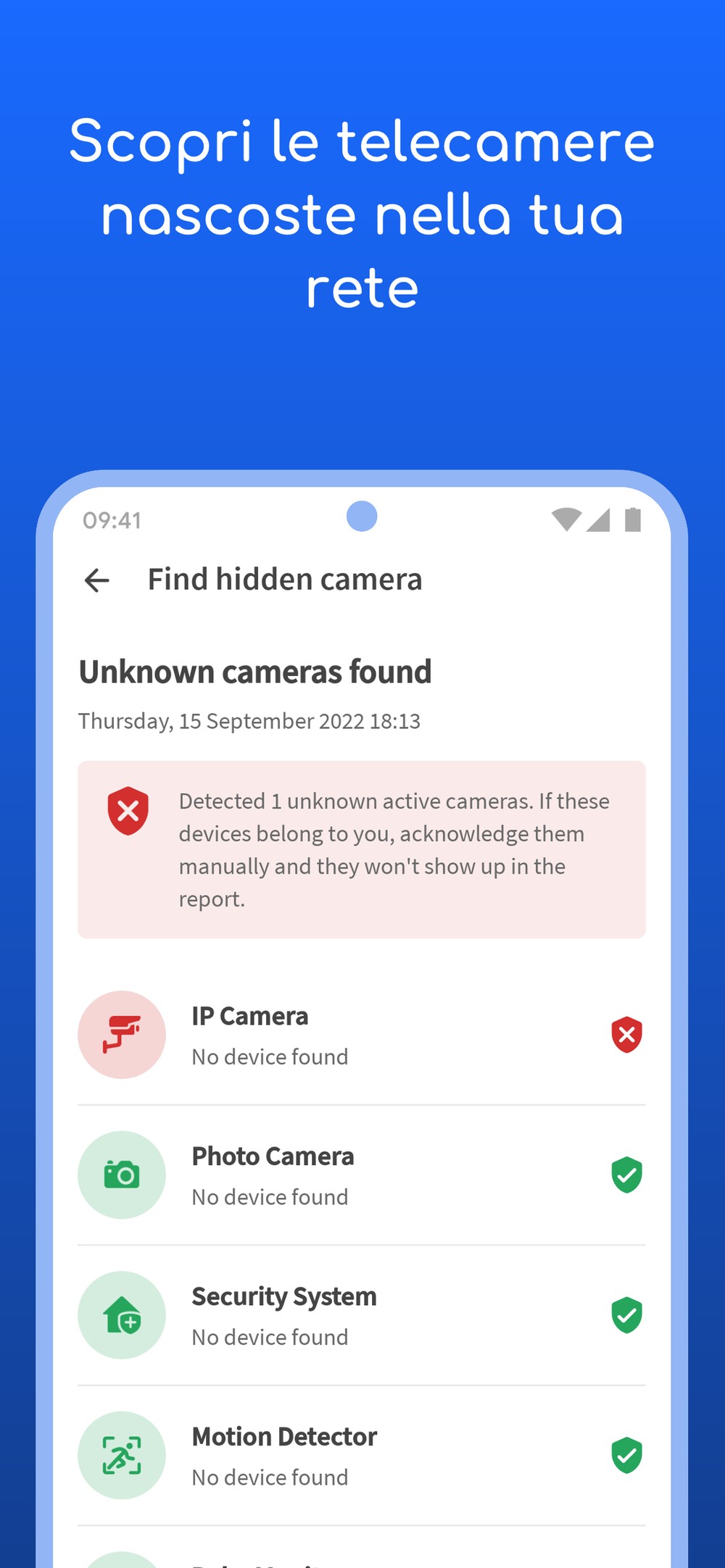Se lo spione è un dilettante, potrebbe lasciare che la sua telecamera (o più di una!) compaia nella lista dei dispositivi collegati alla rete Wi-Fi. Come accedere alla lista? Be’, semplice: basta scaricare l’app Fing o un altro scanner di rete. Ma fa’ attenzione a tutti i dispositivi connessi, non soltanto a quelli riconoscibili chiaramente come telecamere, perché chi le ha installate potrebbe aver provveduto a un “camuffamento” anche virtuale (cambio di nome).